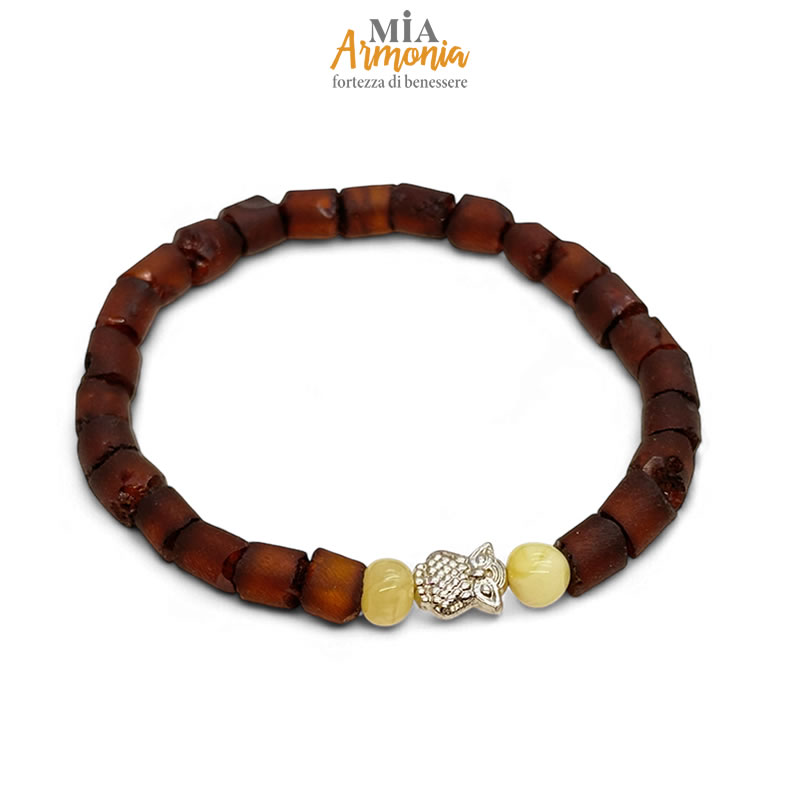 Bracciale elastico in ambra con inserto Gufo