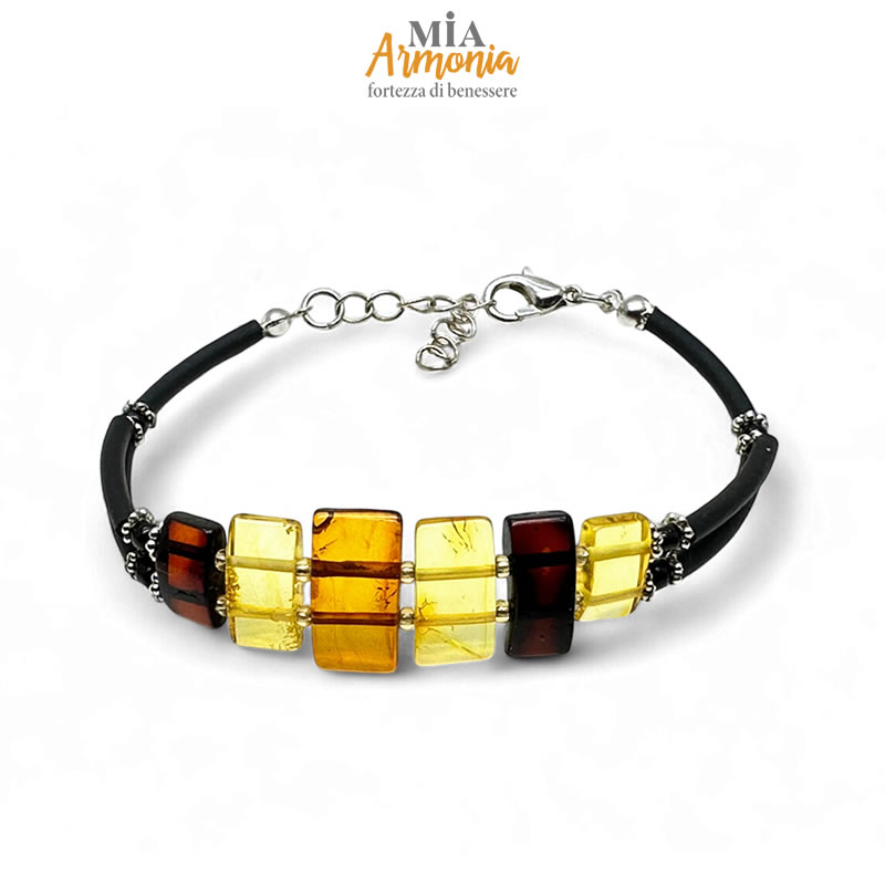 Bracciale in caucciù e ambra a "LOSANGHE SQUARE"