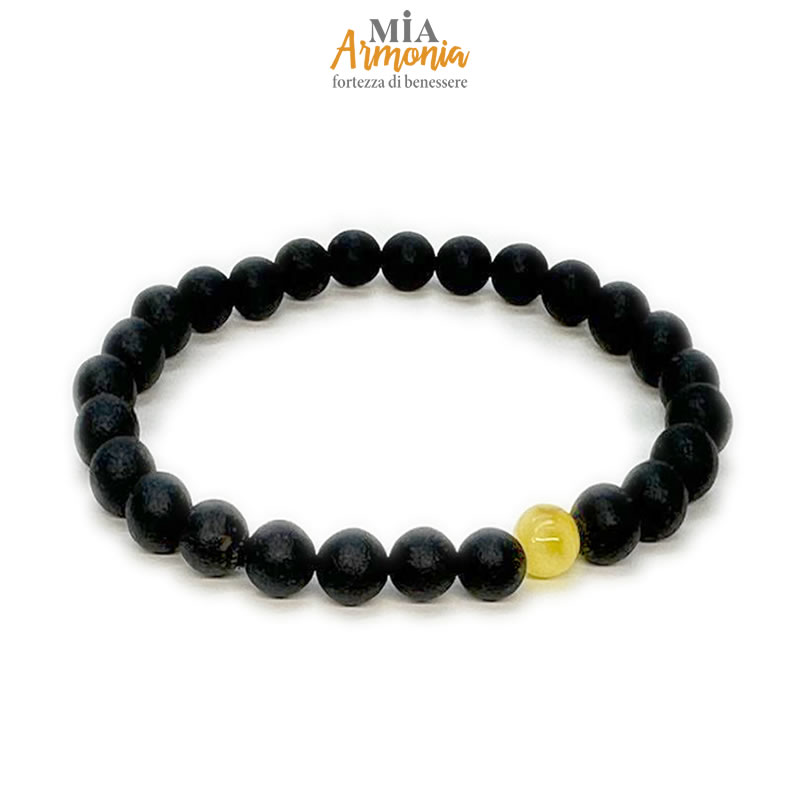 Bracciale elastico ambra nera unisex con un inserto ambra lucida Bianca