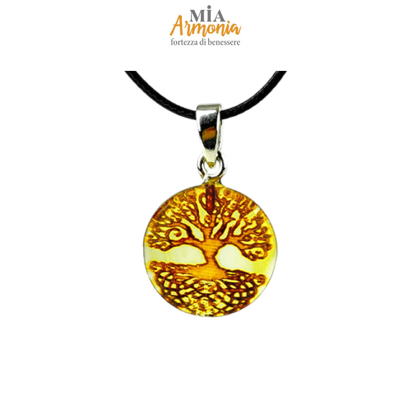 Pendente ambra "ALBERO DELLA VITA" inciso con cordino