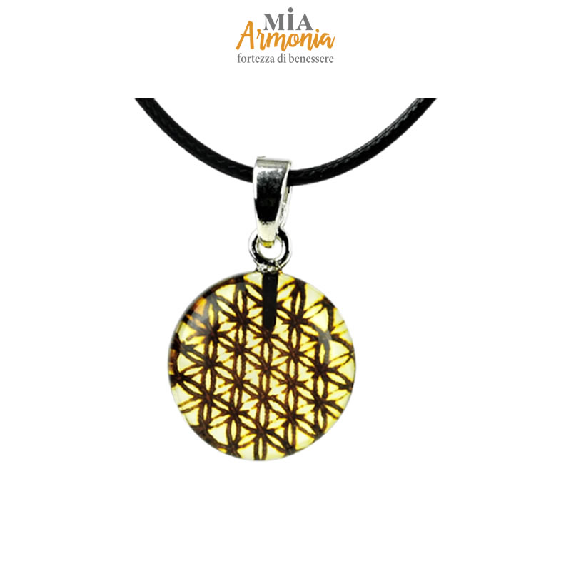 Pendente ambra "FIORE DELLA VITA" inciso con cordino