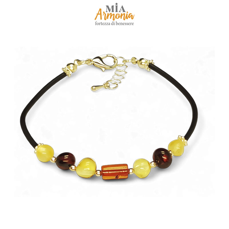 Bracciale in caucciù e ambra inserto cilindro
